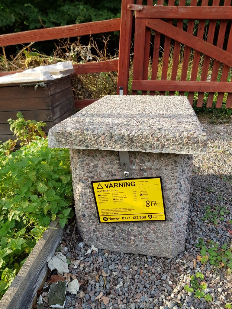 Behovet av sanering/bekämpning av råttor kom upp förra veckan och efter kontakter med kommunen har en underentreprenör fått i uppdrag att ta itu med projektet. Den 26 september placerades 4 st betongstationer med råttgift ut inom koloniområdet (se bifogad bild och karta).